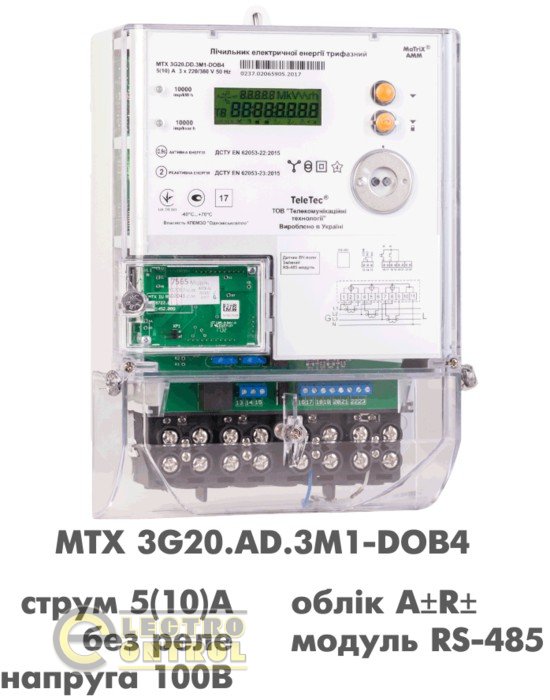 Лічильник 3-ф багатотарифний трансформаторного включення TeleTec MTX 3G20.AD.3М1-DOB4