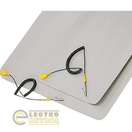 Настольный многослойный антистатический коврик с гарнитурой заземления (крученый шнур длиной 1,5 м с кнопкой 4 мм на одном конце и зажимом "крокодил"). В центре заземляющего провода - резистор емкостью 1 МОм для статической защиты. Материал верхнего и нижнего слоев – ламинированный ПВХ (0.2 и 0.1 мм), центральный слой – ПВХ фольга (1.7 мм), связующий слой - проводник.