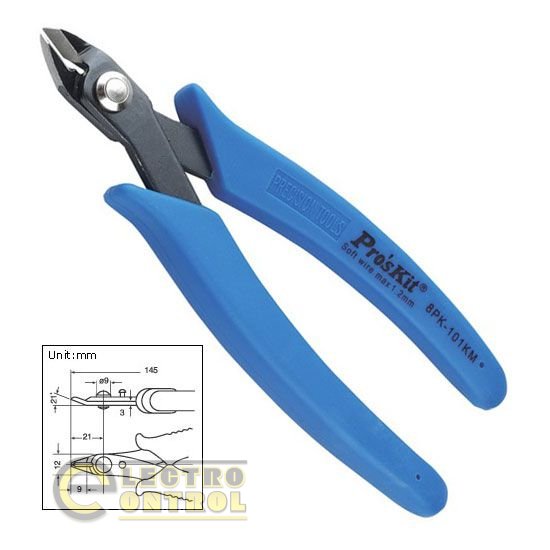 Прецизионные усиленные кусачки Proskit. Изготовлены из высокопрочной углеродистой стали SAE 1085. Режущие кромки обработаны и закалены до твердости 55° ± 3° HRC.