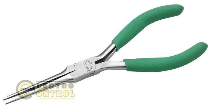 Узкогубцы ProsKit с закаленными кромками. Изготовлены из высококачественной углеродистой стали S45C с никелевым покрытием. Губки прецизионно обработаны и закалены до твердости 43°±3° HRC. Возвратная листовая пружина для удобства работы. Нескользящие ручки. Поставляются в блистерной упаковке