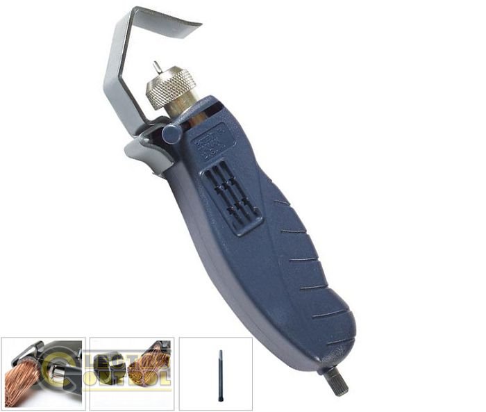 Предназначен для зачистки круглого провода. Корпус изготовлен из пластика со стекловолокном, держатель пробойника - металлический. Поставляется в блистерной упаковке.