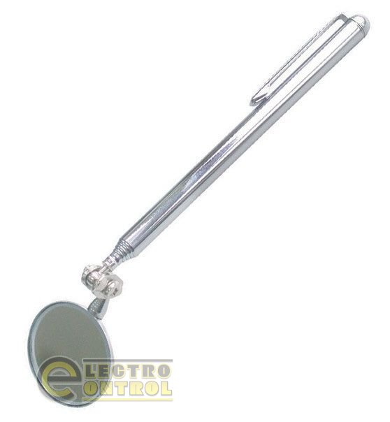 Зеркало с хромированной телескопической ручкой. Благодаря кардану вращается на 360°. Удобно при поиске предметов и контроле их состояния в труднодоступных местах. Поставляется в блистерной упаковке.