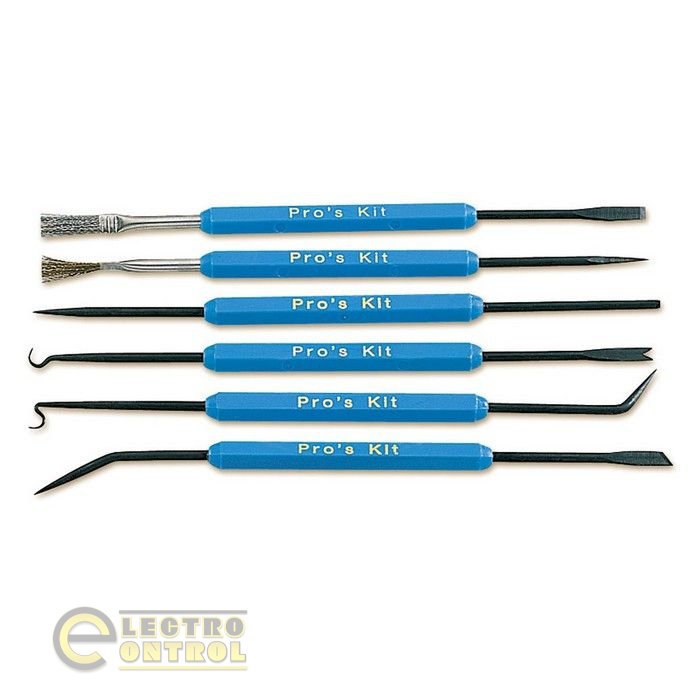 В состав набора из 5 предметов входят теплоотвод для защиты жарочувствительных элементов, нож и щеточка, скребок, крюк и вилочный захват, остроконечный зонд. Поставляются в блистерной упаковке.