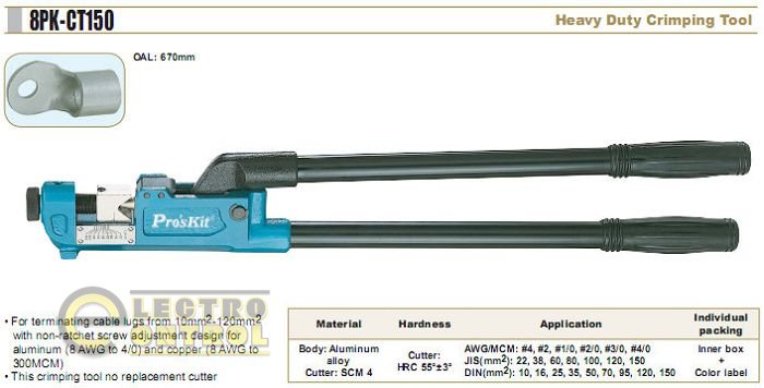 Посилені кліщі для обтиску клем (670мм) ProsKit 8PK-CT150