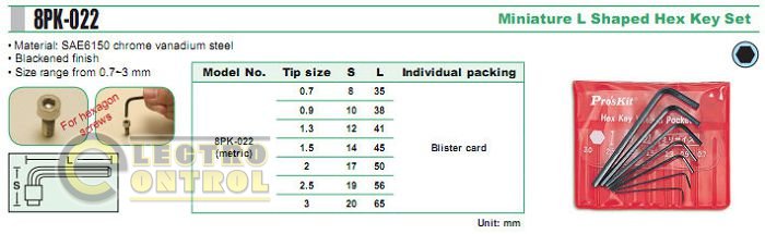 Набір штифтових ключів HEX ProsKit 8PK-022