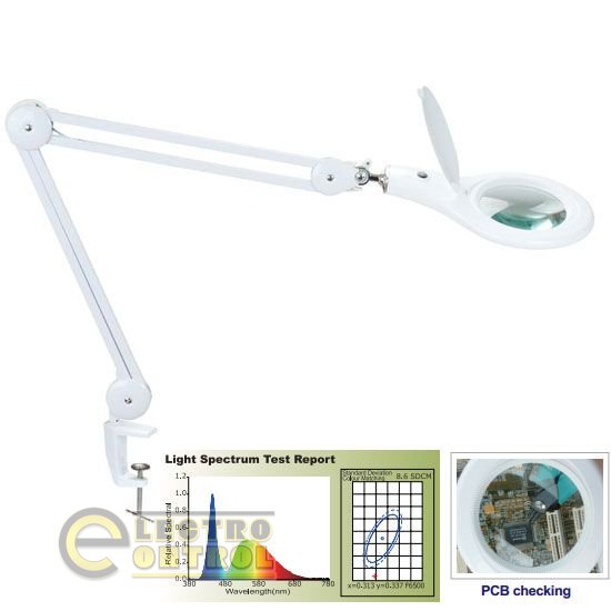 Настольный прибор с подсветкой и 2,25-кратным увеличением. Расположенная на корпусе круговая подсветка из 90 светодиодов. Линза из стекла с защитным покрытием под откидной крышкой. Прочная цельнолитая струбцина для крепления к полке или рабочему столу толщиной до 65 мм. Сбалансированный шарнирный кронштейн для удобства позиционирования. Поставляется в картонной коробке.