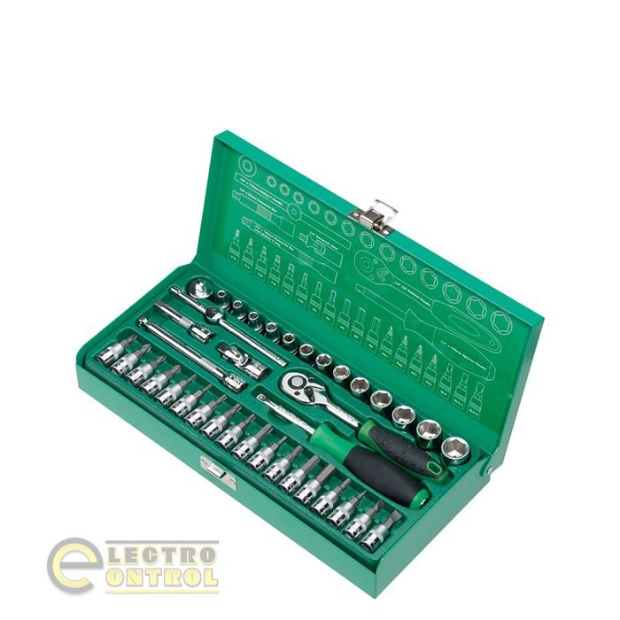 - Трискачний реверсивный ключ, универсальный шарнир, удлинители и рукоятки.