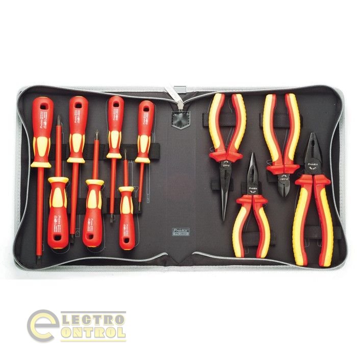 Набор состоит из 11 изолированных по нормам VDE инструментов в прочной полиэстеровой сумке-кейсе с застежкой-молнией. Инструмент расположен в специальных гнездах. Весь инструмент проверен на безопасность при работе с оборудованием под напряжением до 1000 В переменного тока.