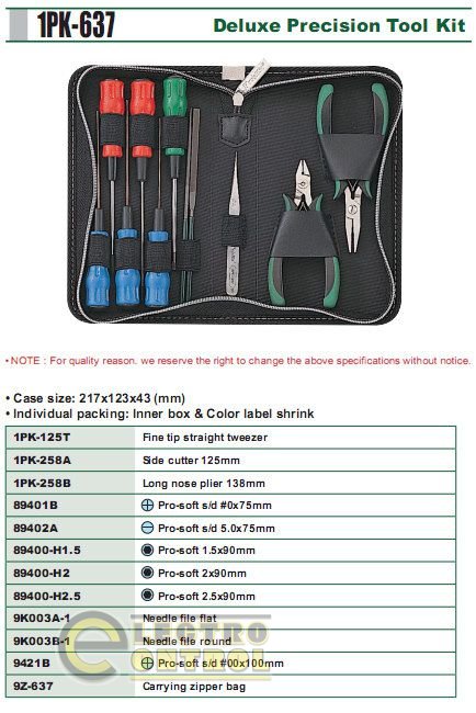 Набор прецизионных отверток ProsKit 1PK-637 - компактный и прочный комплект ручных инструментов для прецизионных работ.