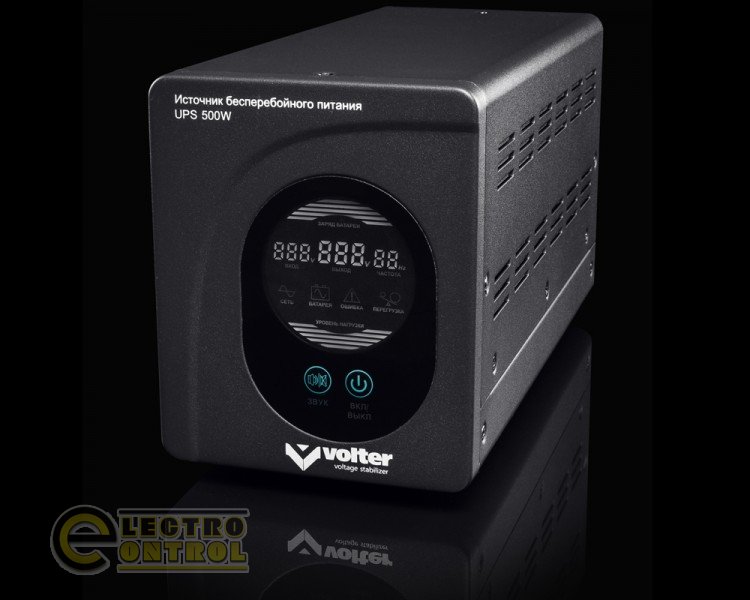 Источник бесперебойного питания UPS-500 ТМ Volter предназначен для непрерывного обеспечения электропитанием особо ответственных потребителей в случае пропадания напряжения в электросети. Устройство автоматически подзаряжает аккумуляторную батарею (АКБ) при появлении напряжения в электросети.