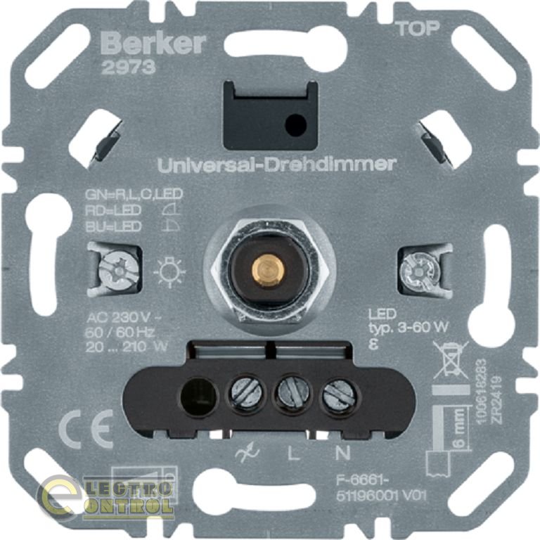 Діммер поворотний, універсальний 20-210Вт, LED 3-60Вт, 230В