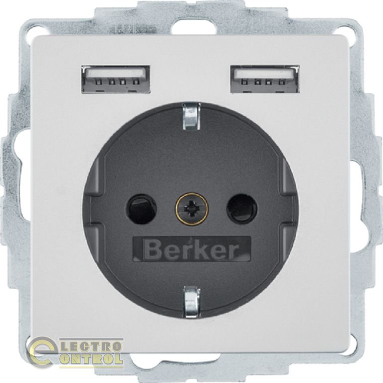 Розетка із з/к 16А/250В + 2хUSB/2.4A, алюміній Q.х