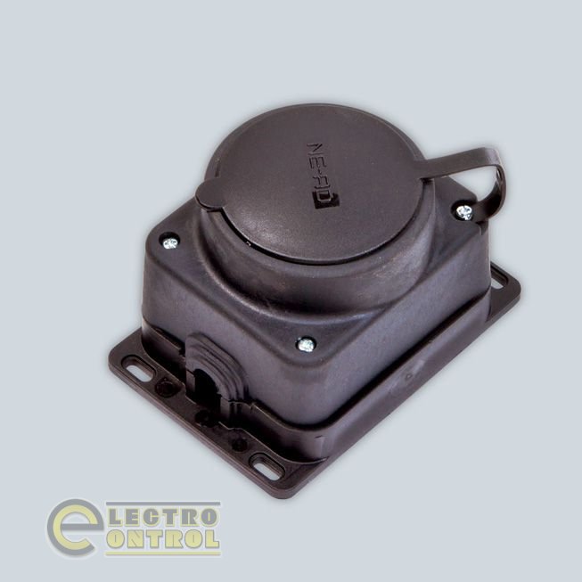 Розетка одинарна каучукова із захисною кришкою, з/к,16А