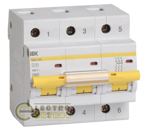 Автоматичний вимикач UEK (IEK) MVA40-3-020-D 3p D 20А 10 кА AC