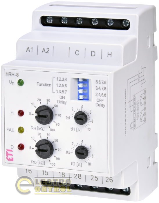Реле контролю рівня рідини HRH-1, HRH-5, HRH-8 служить для контролю одного або двох рівнів рідини в одному резервуарі, а так само контролю одного рівня рідини у двох незалежних резервуарах.