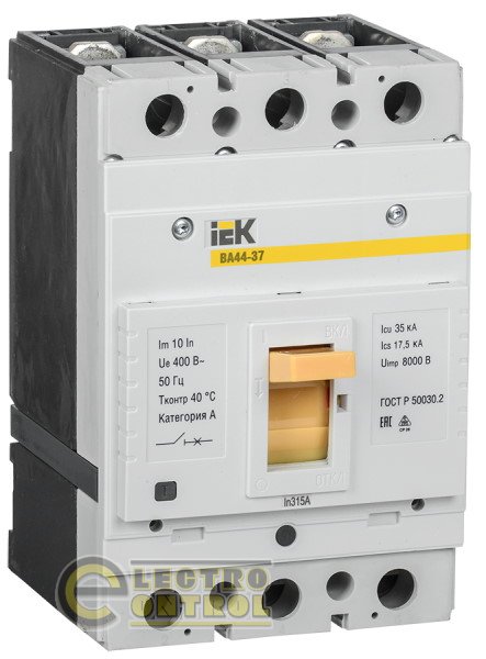Автоматичні вимикачі ВА44 IEK призначені для відключення струму при коротких замиканнях, перевантаженні, неприпустимих зниженнях напруги, а також для оперативних включень і відключень електричних кіл. Розраховані на експлуатацію в електроустановках з номінальною напругою до 400 У и с номінальними струмами, від 25 до 630А.