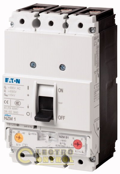 NZMB1-M63 - Автоматичний вимикач захисту двигуна, 63А, 3 полюса, вимкнути.здатність 25ка, діапазон уставки 50...63А