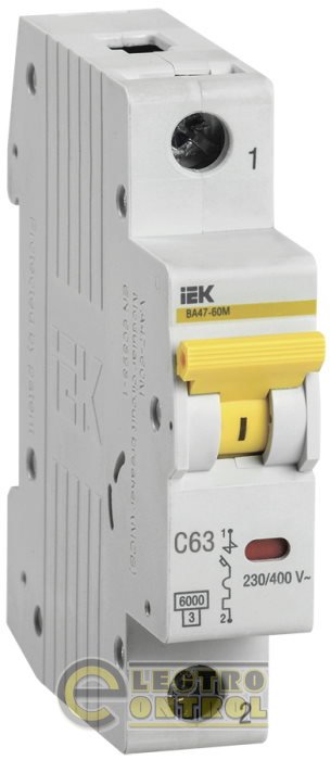 Автоматичний вимикач UEK (IEK) ВА47-60М MVA31-1-063-C 1p C 63А 6 кА