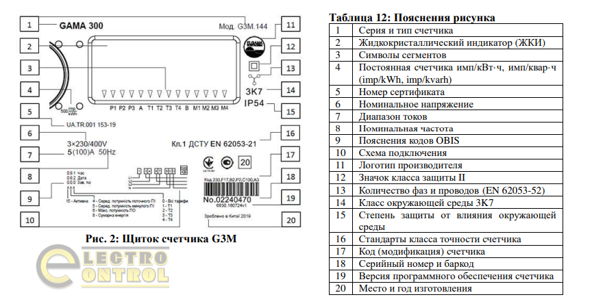 Опис електролічильника GAMA 300 G3M.144.230.F17.P2.C100.A3