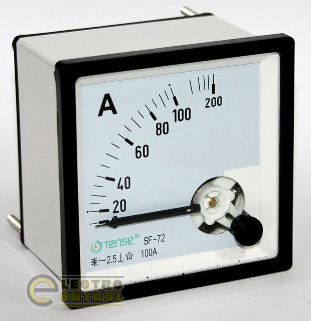Амперметр 100А стрілочний прямого включення TENSE щитовий 72х72 змінного струму