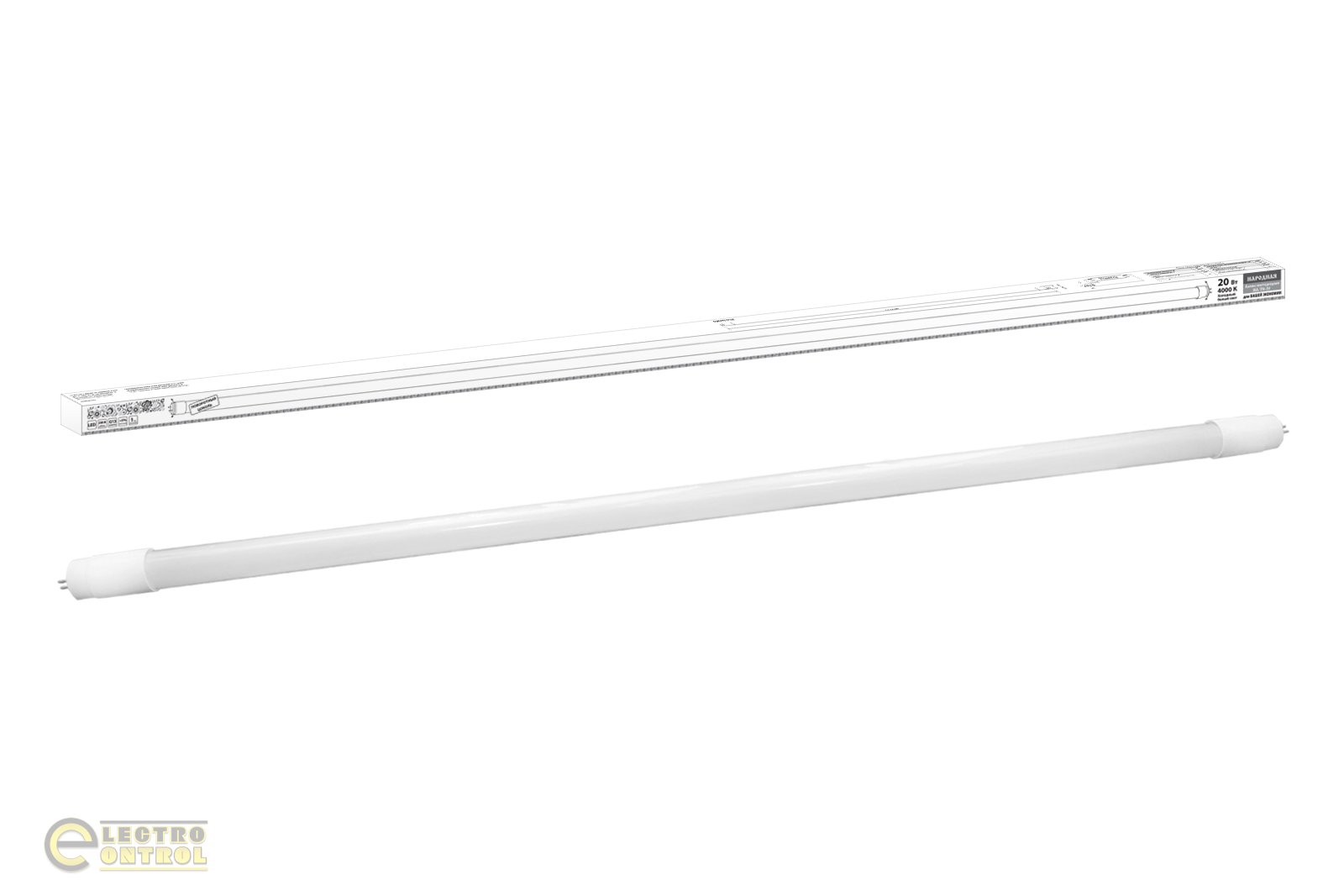 Лампа світлодіодна НЛ-Т8-20 Вт-230 В-6500 ДО–G13, 1200 мм, матова, стекло, непов. Народна