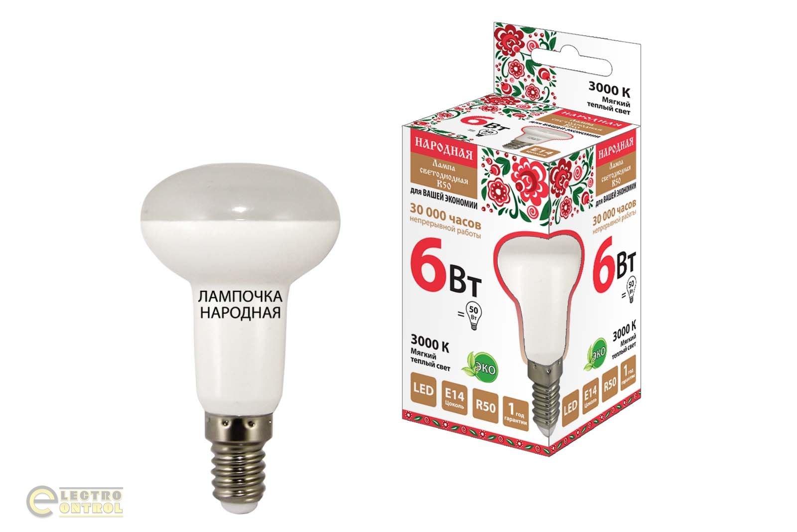 Лампа світлодіодна R50 - 6 Вт-230 В -3000 ДО–E14 Народна*