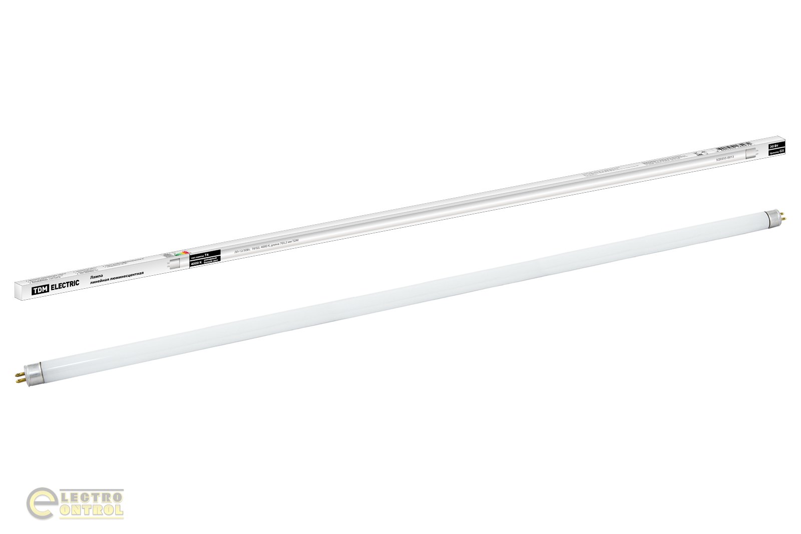 Лампа люмінесцентна лінійна двоцокольна ЛЛ-12/30Вт, T4/G5, 4000 ДО, довжина 765,2мм TDM