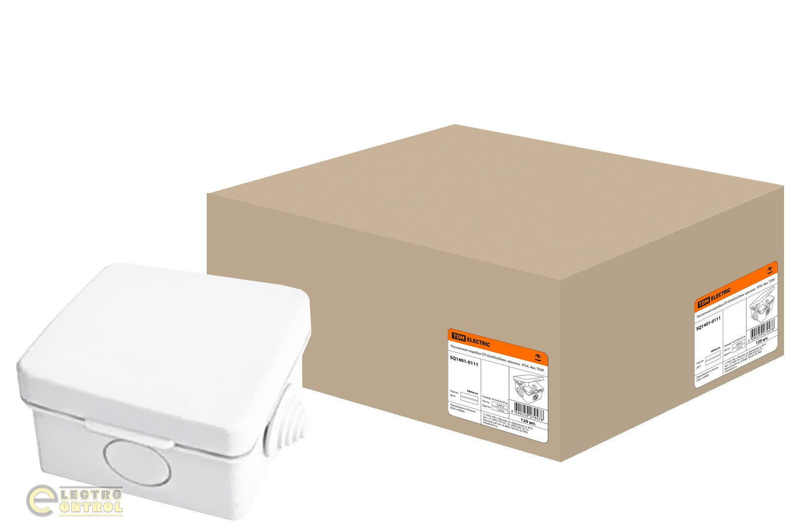 Распаячная коробка ОП 65х65х50мм, крышка, IP54, 4вх. TDM