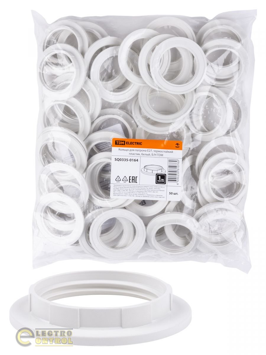 Кольцо для патрона Е27, термостойкий пластик, белый, Б/Н TDM