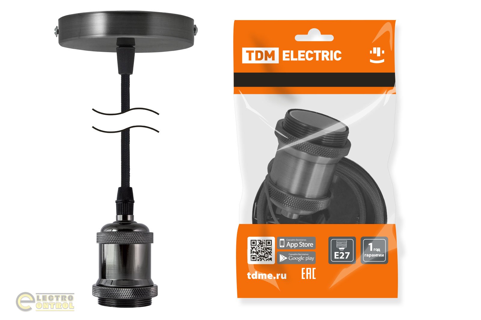 Патрон Е27 с подвесом 1 м, металлический "Лофт", черный TDM