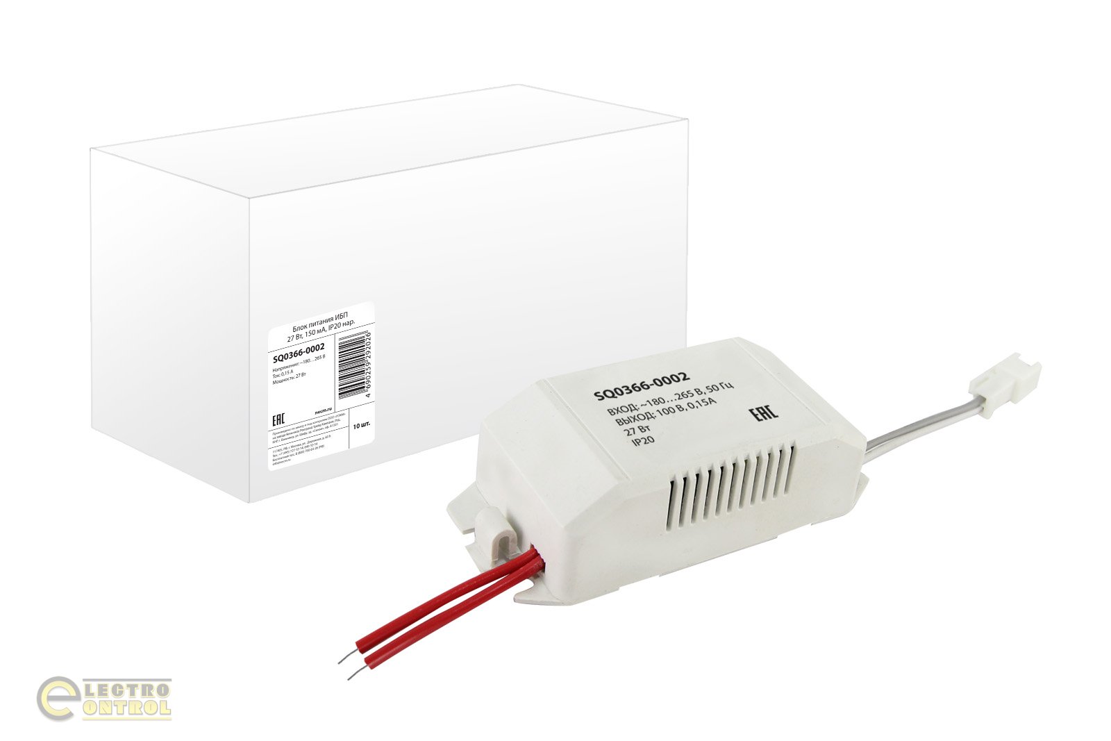 Дополнительные характеристики. Диаметр, мм: _; Длина, мм: 88; Гарантия производителя: 1 год; Высота, мм: 22; Ширина, мм: 35; Количество светодиодов: 0; Номин. напряжение, В: 180…265; Модель/исполнение: Статический; Выход. мощность, Вт: 27; Выходной ток, мА: 150; Выход. напряжение (диапазон), В: 100; Подходит для светодиодной ленты: Нет; Номин. частота, Гц: 50; Выход. напряжение, В: 100; Тип диммирования: Недиммируемый; Подходит для использования вне помещений (уличн.): Нет; Тип изделия/компонента: LED-драйвер (блок питания для светодиодов); Корпус: Пластиковый корпус; Степень защиты, IP: IP20