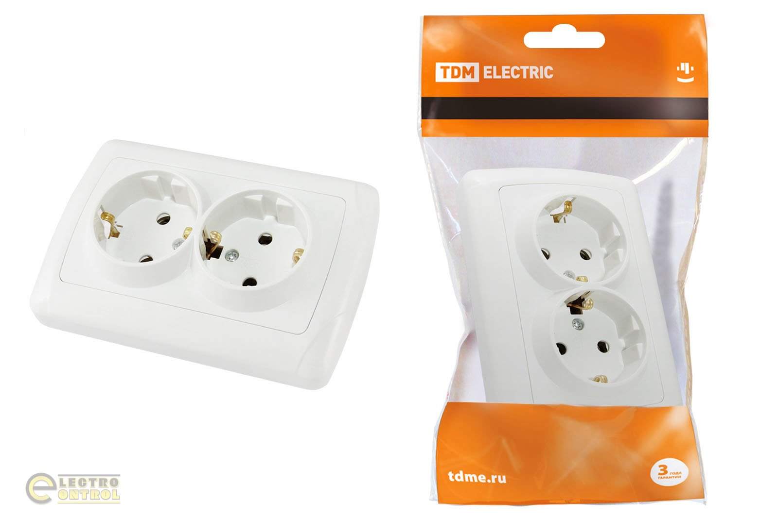 Розетка подвійна 2П+3 16А 250В біла "Онега" TDM