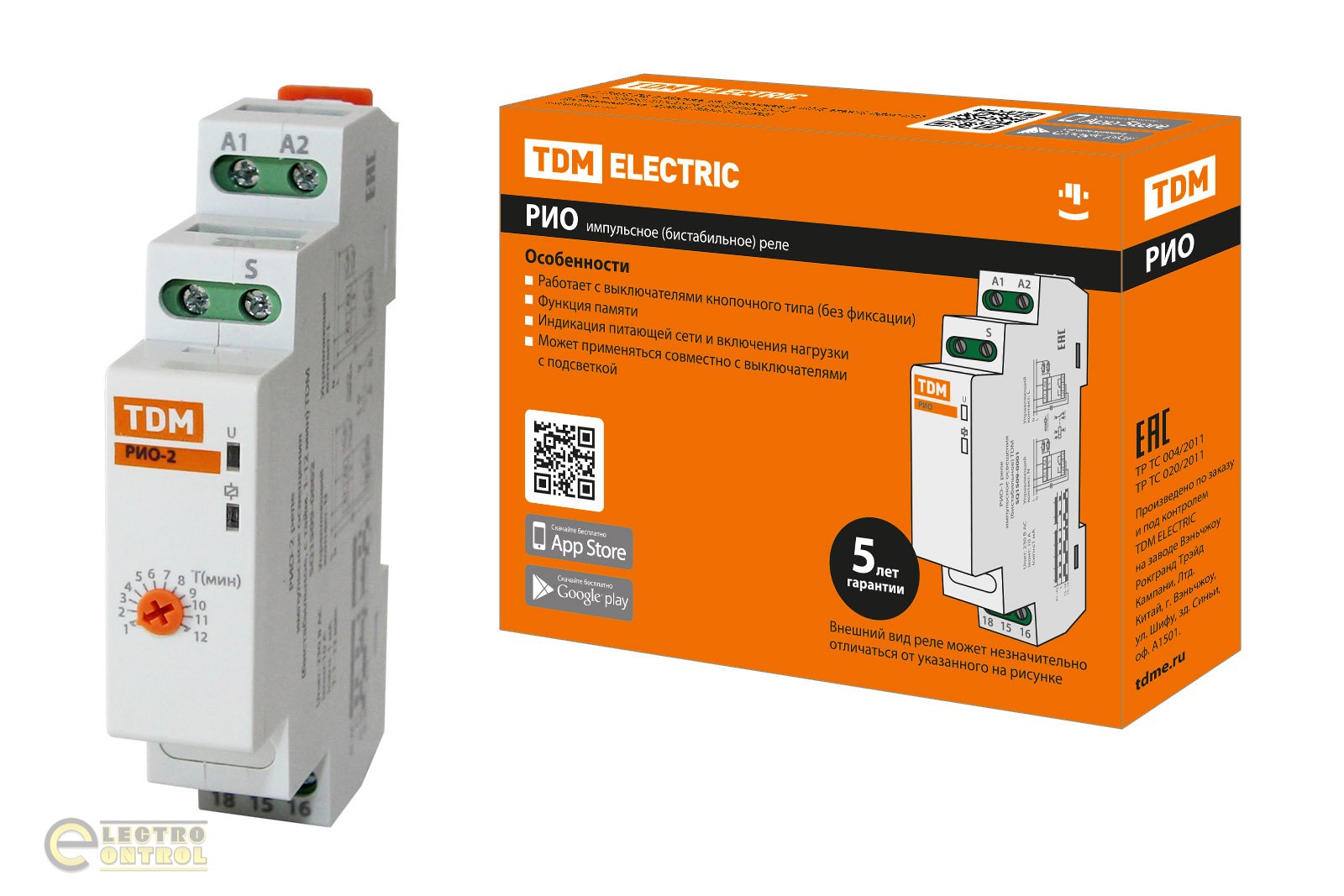 РИО-2 реле импульсное освещения (бистабильное, с тайм. 1-12 мин, 230В) TDM