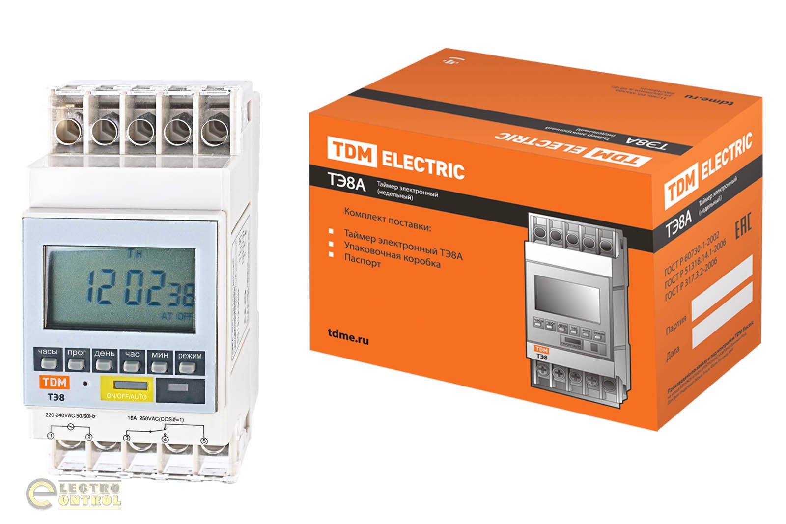 Таймер электронный ТЭ8A-1мин/7дн-8on/off-16А-DIN TDM