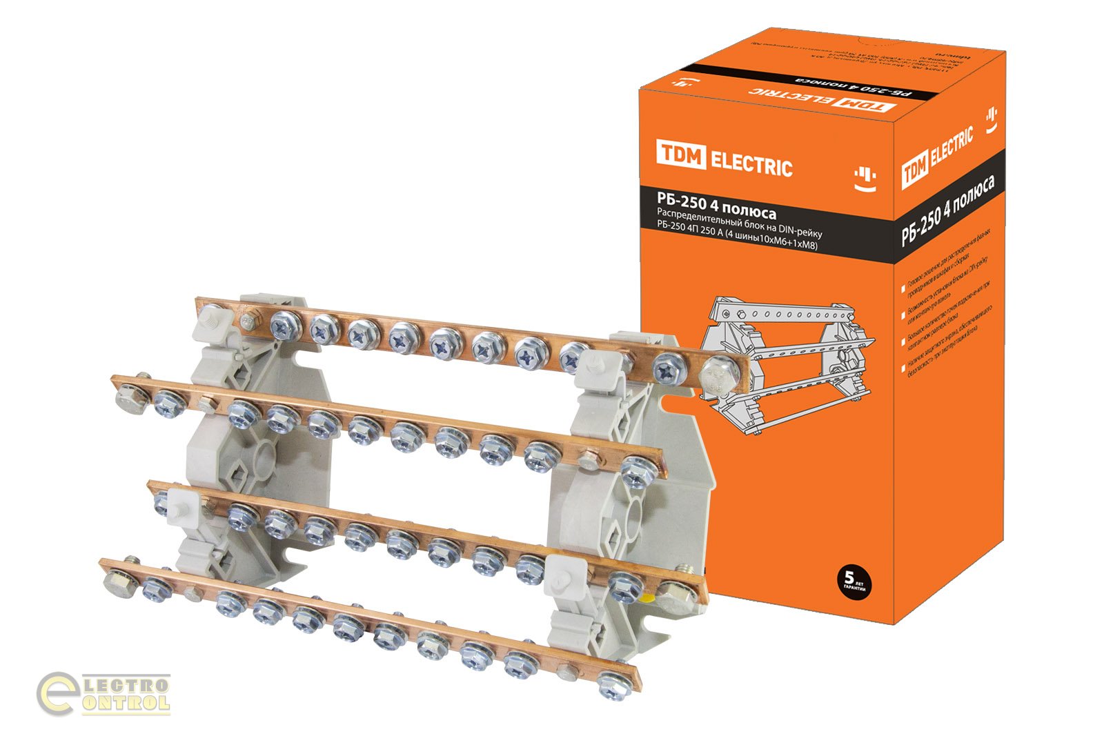 Розподільний блок на DIN-рейку РБ-250 4П 250А (4 шини 10xM6+1хM8) TDM