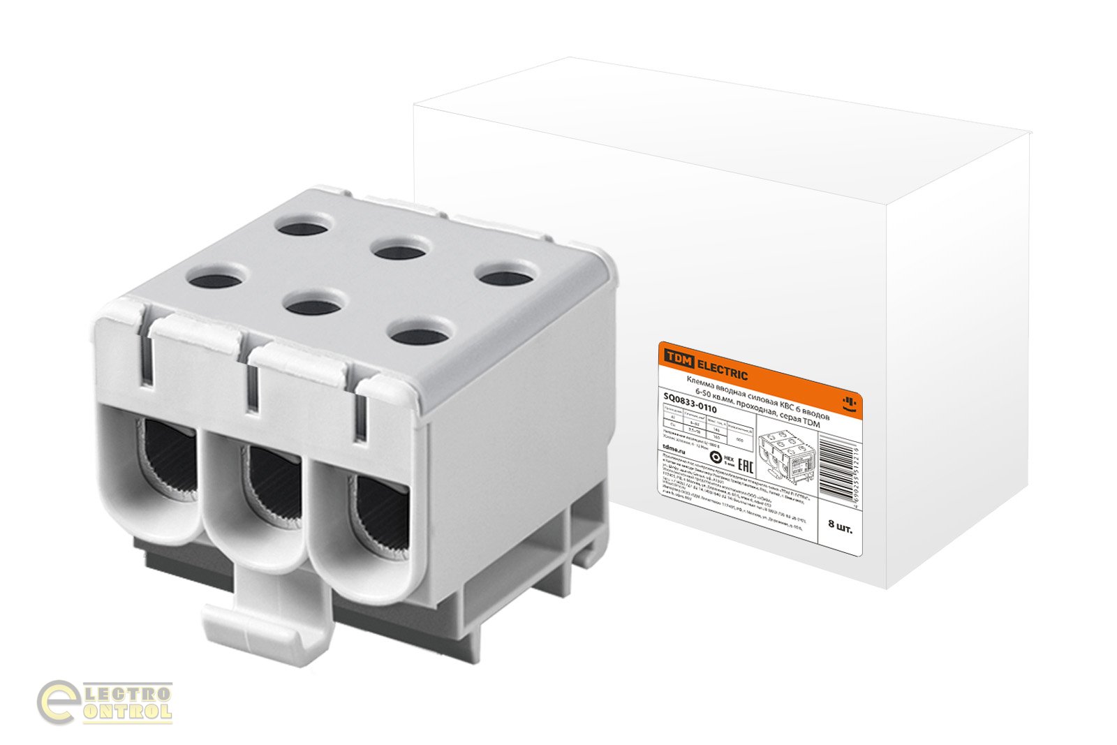 Клема вступна силова КВС 6 уведень 6-50 кв.мм. прохідна, сіра TDM