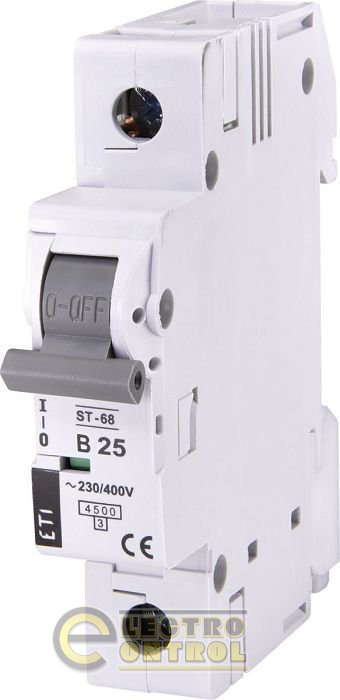 Серія автоматичних вимикачів із функцією захисту від струмів короткого замикання ST 68 1p B 25А призначена для використання в побутових і комунальних електромережах, а також у розподільних щитах, шафах управління тощо промислових споживачах невеликої потужності.