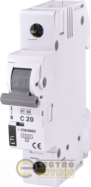 Серія автоматичних вимикачів із функцією захисту від струмів короткого замикання ST 68 1p C 20А призначена для використання в побутових і комунальних електромережах, а також у розподільних щитах, шафах управління тощо промислових споживачах невеликої потужності.