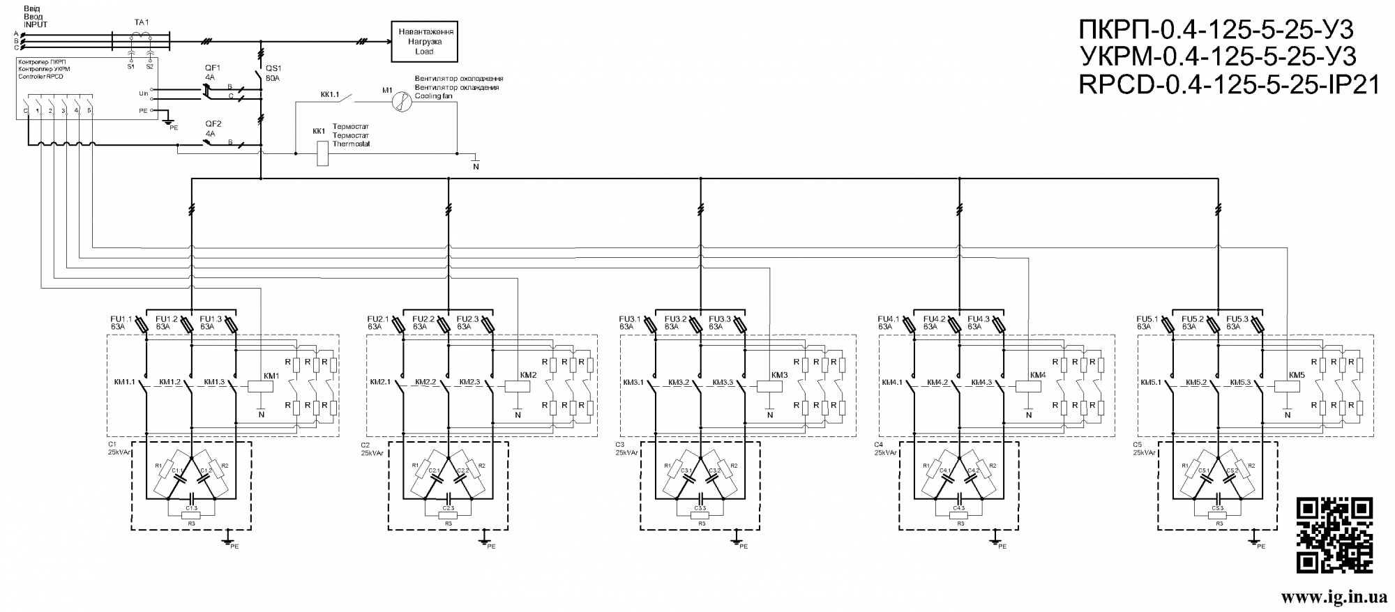 -конденсаторне устаткування укрп 0,4 кВ 125 кВар УКРП - 0.4 - 125 - 5 - 25 УЗ заснована на використанні високоякісних компонентів та виробничих потужностів. Вони підвищують ефективність роботи розподільчих мереж і забезпечують більшу надійність.