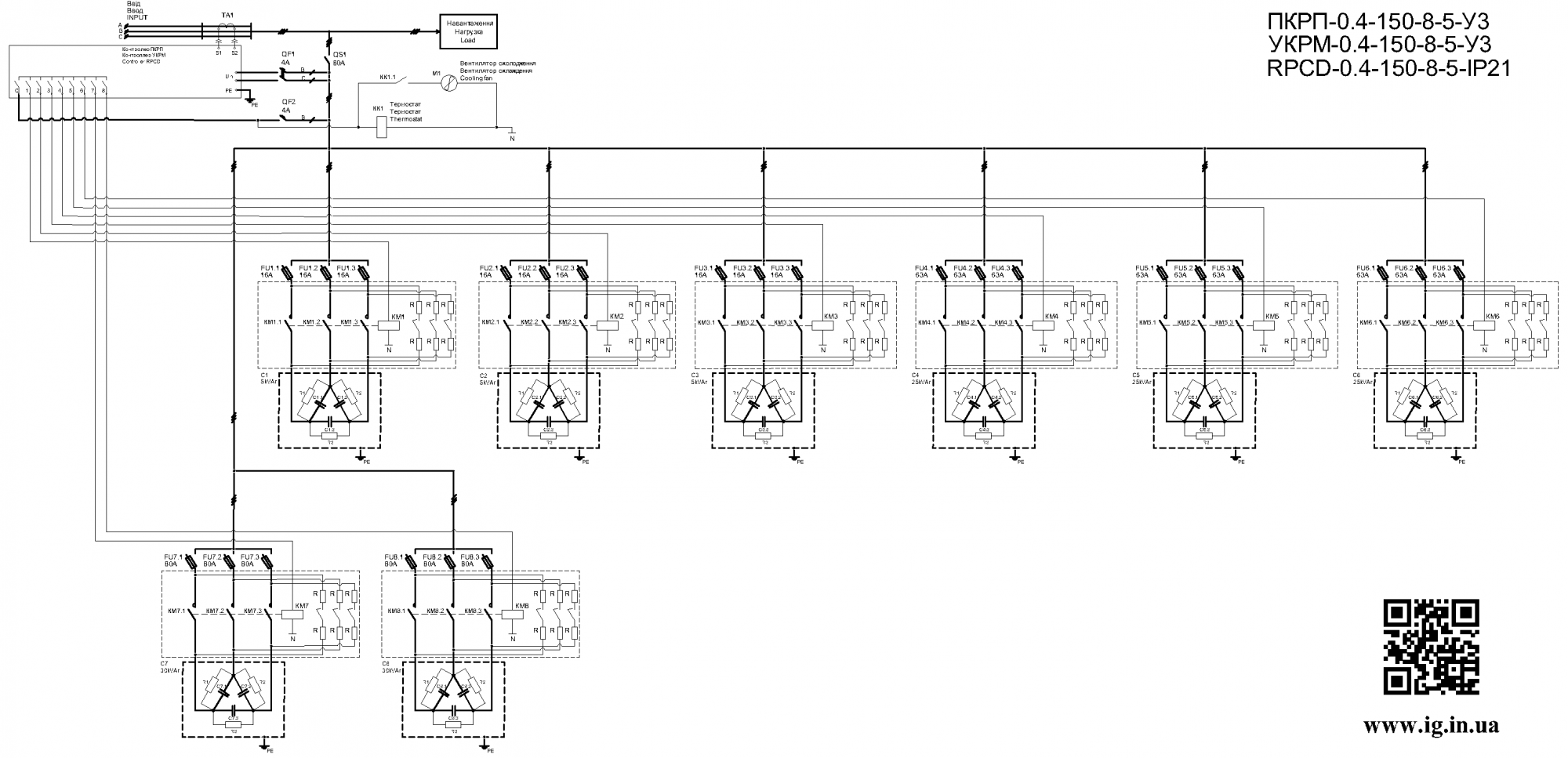 -конденсаторне устаткування укрп 0,4 кВ 150 кВар УКРП - 0.4 - 150 - 8 - 5 УЗ заснована на використанні високоякісних компонентів та виробничих потужностів. Вони підвищують ефективність роботи розподільчих мереж і забезпечують більшу надійність.