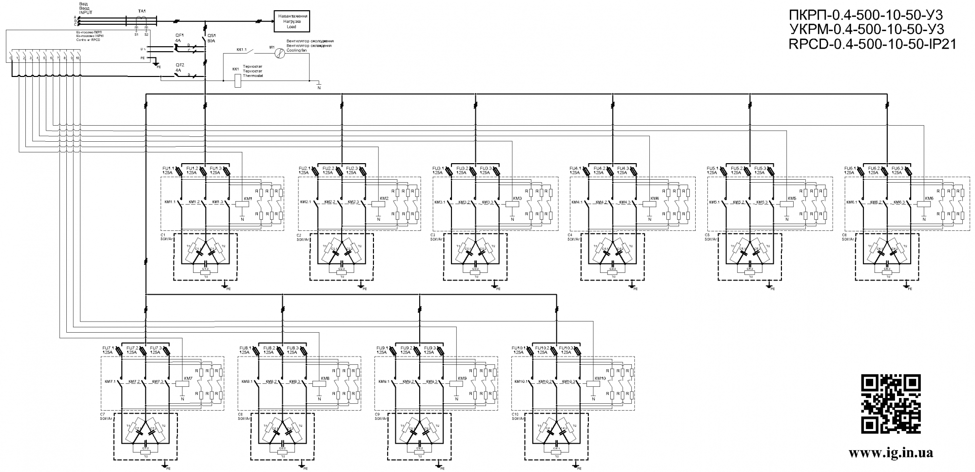 • устаткування УКРП-0,4 500 кВар УКРП - 0.4 - 500 - 10 - 50 УЗ в упаковці - 1 шт.