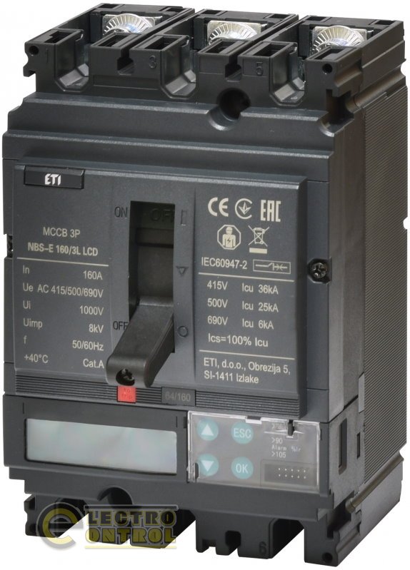 Автоматичний вимикач ETIBREAK NBS-E 100/3S LCD 100A 3P