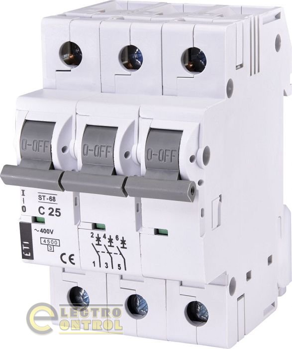Серія автоматичних вимикачів із функцією захисту від струмів короткого замикання ST 68 3p C 25А призначена для використання в побутових і комунальних електромережах, а також у розподільних щитах, шафах управління тощо промислових споживачах невеликої потужності.