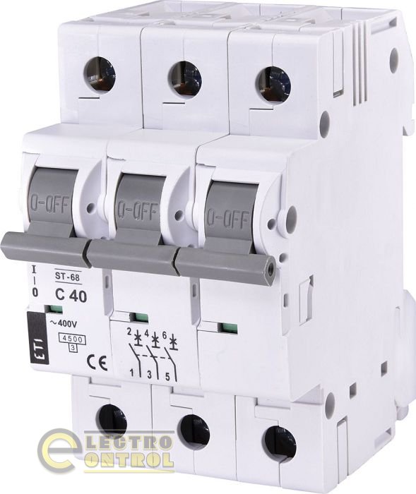 Серія автоматичних вимикачів із функцією захисту від струмів короткого замикання ST 68 3p C 40А призначена для використання в побутових і комунальних електромережах, а також у розподільних щитах, шафах управління тощо промислових споживачах невеликої потужності.