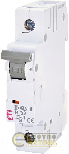 Серія автоматичних вимикачів із функцією захисту від струмів короткого замикання ETIMAT 6 1p B 32А призначена для використання в побутових і комунальних електромережах, а також у розподільних щитах, шафах управління тощо промислових споживачах невеликої потужності.