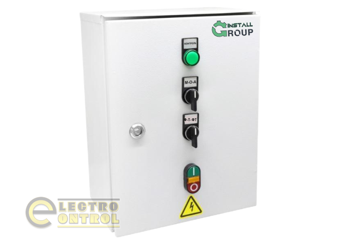 Щит ЯУО-9601-3874 (3ф 63А) працює з таймером часу і сутінковим реле, в автоматичному режимі спрацювання сигналу відбувається в заданий проміжок часу від увімкнення фотоелемента. Цей щит так само забезпечує роботу схеми в таких режимах (перемикач SA1):