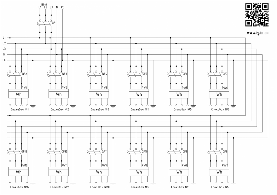 Схема шафи технічого обліку ШОт-3ф-12: