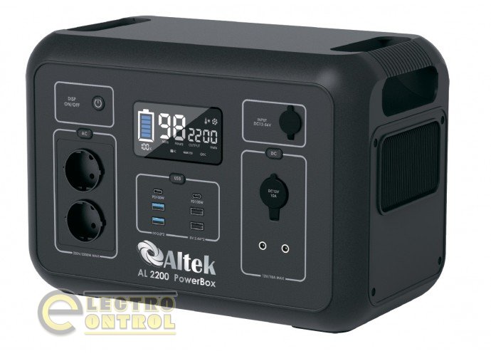 ALTEK PowerBox AL 1200 – портативна станція, яка буде незамінною за відсутності електропостачання у приватних будинках, квартирах, на дачі, офісних приміщеннях, у польових умовах, під час активного відпочинку на природі, а також у подорожах. Сумісна з більшістю електронних пристроїв, таких як дрони, ноутбуки, ліхтарі, смартфони, планшети, камери, рації, мережеве обладнання, світлодіодні лампи, холодильники, телевізори та багато інших пристроїв.
