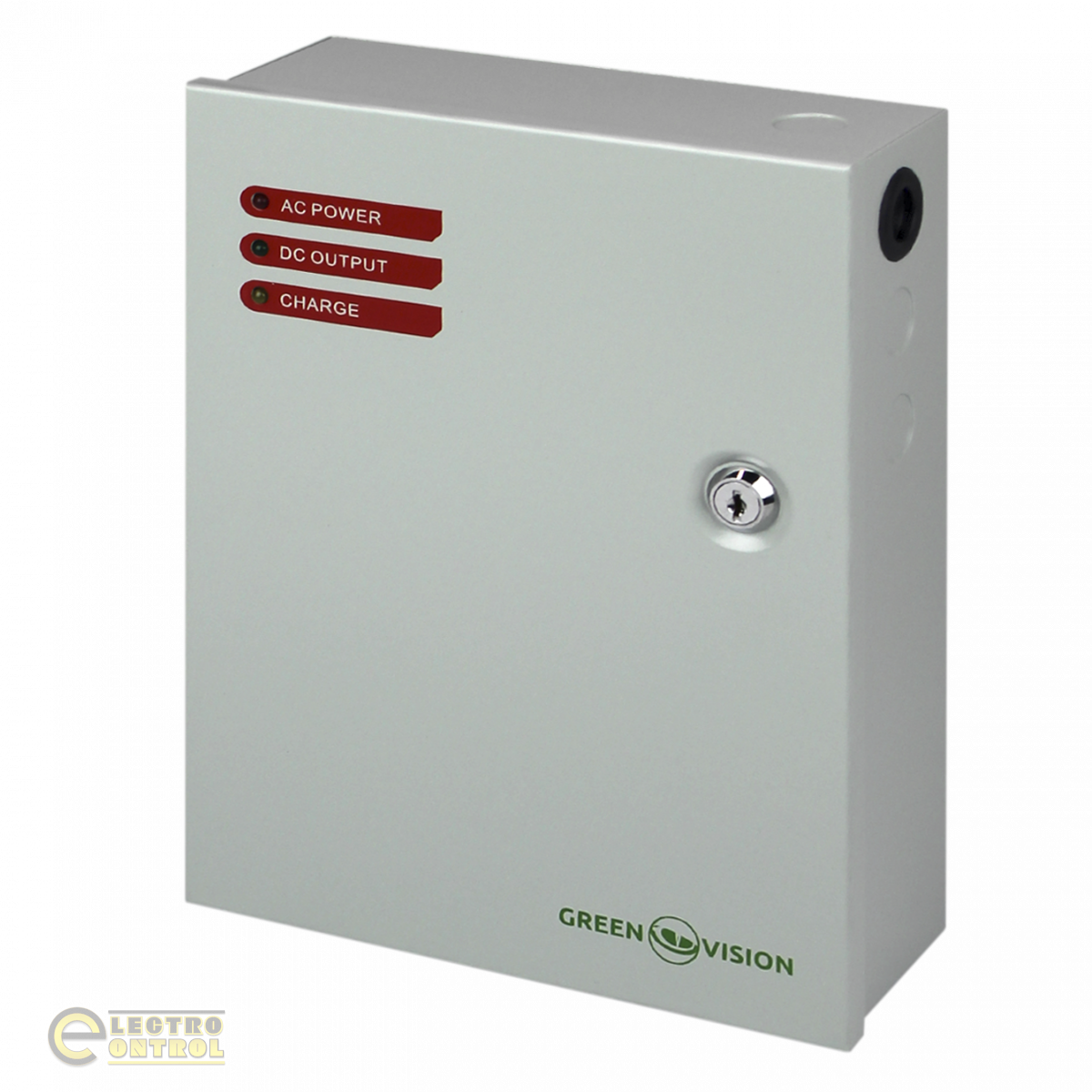 Складається з імпульсного блоку живлення, який перетворює вхідну напругу 190-265 V (частота мережі – 50/60 Гц) до параметра DC 12 V ±5% та акумуляторної батареї (не входить до комплектації) зовнішнього типу.