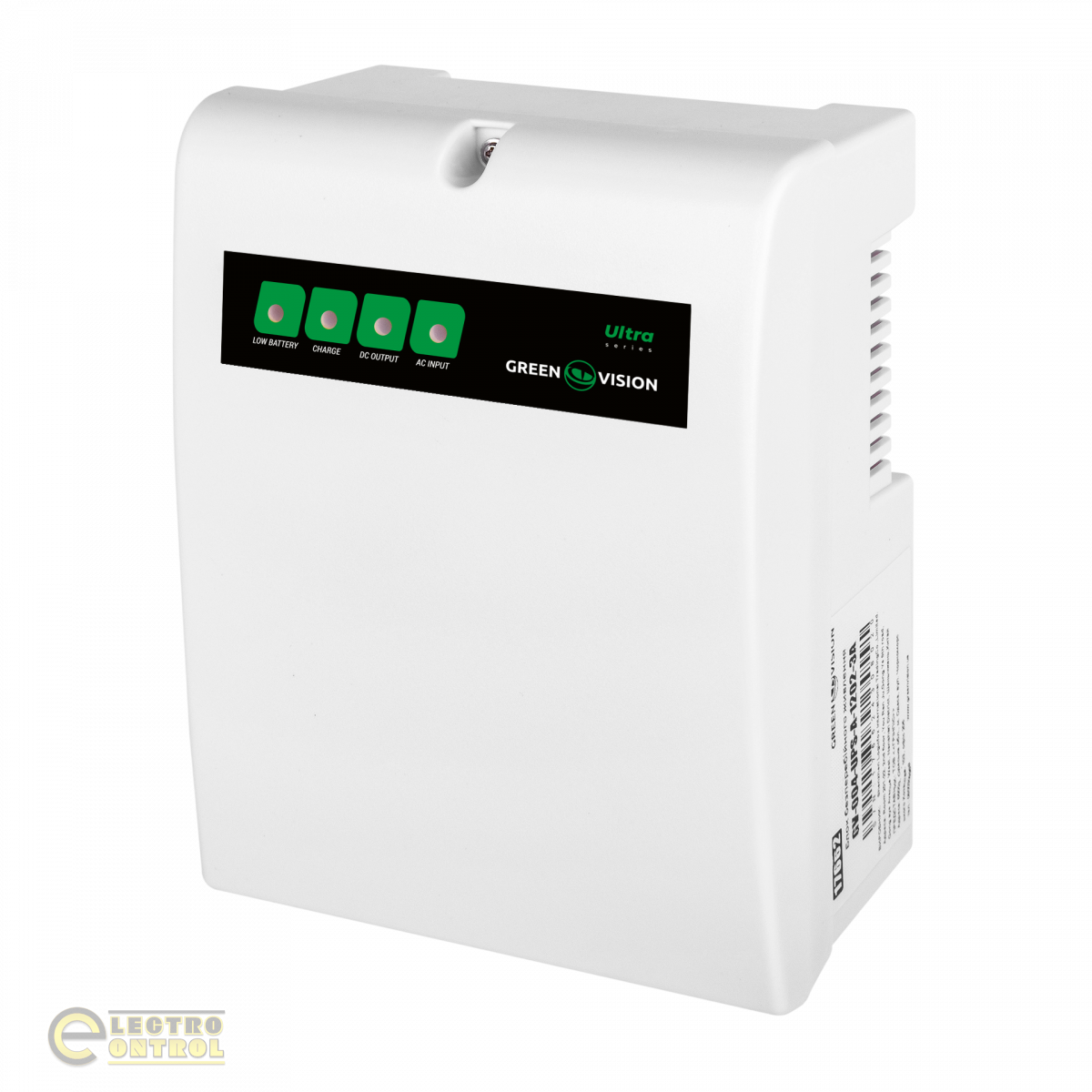 Джерело безперебійного живлення (ДБЖ) GV-004-UPS-A-1202-3A складається з імпульсного блока живлення, який перетворює вхідну напругу 190-265 V (частота мережі – 50/60 Гц) до параметра DC 12 V ±5% і акумуляторної батареї (не входить до комплекту) зовнішнього типу 12 V ємністю до 9 Ah.